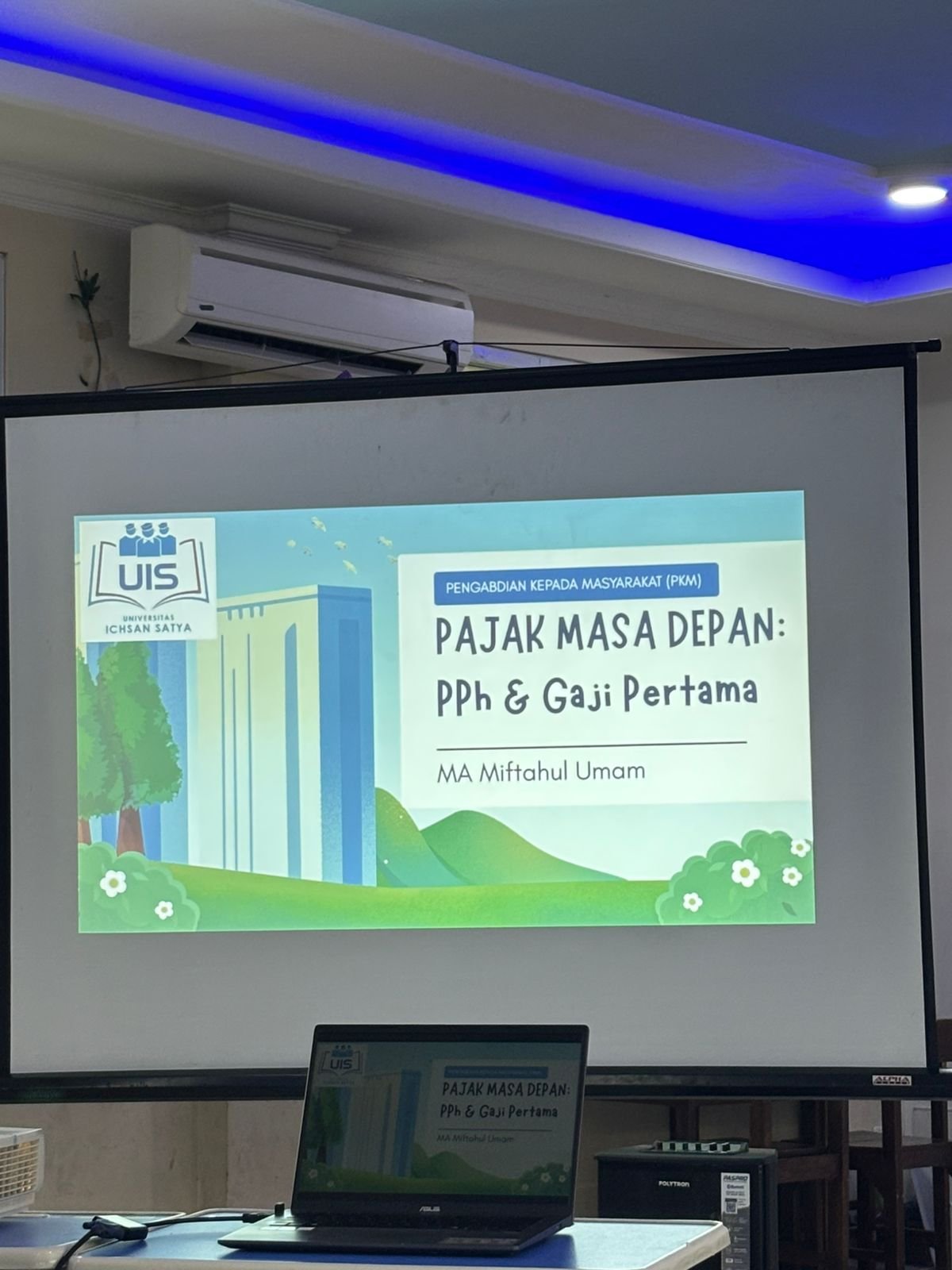 Madrasah Aliyah Miftahul Umam mendapatkan kegiatan penyuluhan bertajuk “Pajak Masa Depan: PPh dan Gaji Pertama” yang diselenggarakan oleh dosen Universitas Ichsan Satya (UIS) melalui program Pengabdian kepada Masyarakat, pada Jumat, 23 Januari 2026.